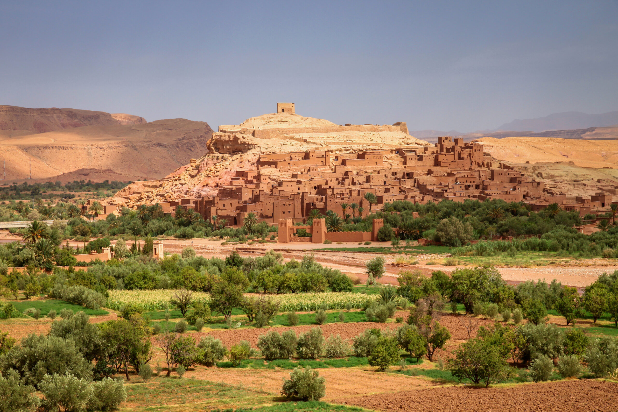 Die Fahrt geht über den Hohen Atlas und über den 2260m hohen Tizi-n-Tichka Pass mit einer überwältigenden Aussicht. Die steile Straße, gesäumt von Eichenwäldern und Nussbäumen, führt an den Lehm- und Steinhäusern der Berberdörfer und an rauschenden Gebirgsbächen vorbei. Wenn der Pass überquert ist, führt die steile Straße hinab in die fast mondähnliche Landschaft des Antiatlas und wir erreichen unser erstes Ziel, die Kasbah von Telouet; entlang der ehemaligen Route der Karawanen, war diese der Sitz der Macht der Familie El Glaoui, daher manchmal auch Palast der Glaoui genannt (wenn Sie wünschen können Sie die Kasbah besichtigen). Weiter geht es nach Ait Benhaddou eine aus Lehmziegeln erbaute Kasbah. Diese, als Weltkulturerbe von der UNESCO geschützt, gilt als die schönste und berühmteste Kasbah Marokkos und diente als Kulisse für Filme wie “Lawrence von Arabien”, “Jesus von Nazareth” oder “Gladiator”. Nach der Besichtigung, Mittagessen und Weiterfahrt in das Draatal. Aus den Gewässern des Hohen Atlas hat sich eine langgezogene Oase, das Draà-Tal geformt, das sich von Ouarzazate bis Mhamid ausdehnt. Der schönste Teil der Oase mit Millionen von Dattelpalmen erstreckt sich von Agdz bis Zagora. Spaziergang in der Oase, Abendessen und Übernachtung in einem für die Region typischen Riad.