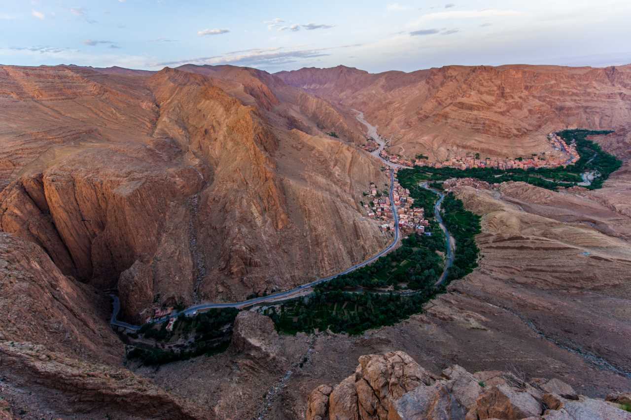 Die Fahrt geht über den Hohen Atlas und über den 2260m hohen Tizi-n-Tichka Pass mit einer überwältigenden Aussicht. Die steile Straße, gesäumt von Eichenwäldern und Nussbäumen, führt an den Lehm- und Steinhäusern der Berberdörfer und an rauschenden Gebirgsbächen vorbei. Wenn der Pass überquert ist, führt die steile Straße hinab in die fast mondähnliche Landschaft des Antiatlas und wir erreichen unser erstes Ziel, die Kasbah von Telouet; entlang der ehemaligen Route der Karawanen, war diese der Sitz der Macht der Familie El Glaoui, daher manchmal auch Palast der Glaoui genannt (wenn Sie wünschen können Sie die Kasbah besichtigen). Weiter geht es nach Ait Benhaddou eine aus Lehmziegeln erbaute Kasbah. Diese, als Weltkulturerbe von der UNESCO geschützt, gilt als die schönste und berühmteste Kasbah Marokkos und diente als Kulisse für Filme wie “Lawrence von Arabien”, “Jesus von Nazareth” oder “Gladiator”. Nach der Besichtigung und Mittagsrast geht die Fahrt weiter, durch Dattelpalmen-Oasen und vorbei an wunderschönen alten Kasbahs, die dieser Region ihren Namen gegeben haben – in das Tal der 1000 Kasbahs. Über Skoura und Kelaa M’Gouna geht es dann in die beeindruckende Dadesschlucht. Abendessen und Übernachtung im Riad in der Dadesschlucht.