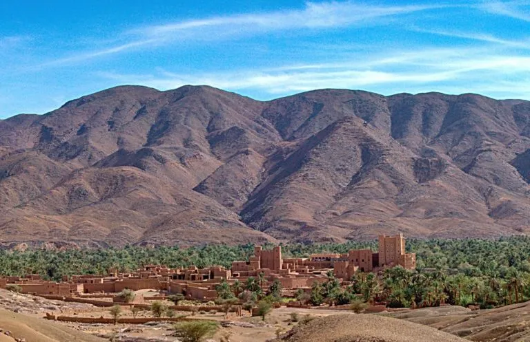 Die Fahrt geht über den Hohen Atlas und über den 2260m hohen Tizi-n-Tichka Pass mit einer überwältigenden Aussicht. Die steile Straße, gesäumt von Eichenwäldern und Nussbäumen, führt an den Lehm- und Steinhäusern der Berberdörfer und an rauschenden Gebirgsbächen vorbei. Wenn der Pass überquert ist, führt die steile Straße hinab in die fast mondähnliche Landschaft des Antiatlas und wir erreichen unser erstes Ziel, die Kasbah von Telouet; entlang der ehemaligen Route der Karawanen, war diese der Sitz der Macht der Familie El Glaoui, daher manchmal auch Palast der Glaoui genannt (wenn Sie wünschen können Sie die Kasbah besichtigen). Weiter geht es nach Ait Benhaddou eine aus Lehmziegeln erbaute Kasbah. Diese, als Weltkulturerbe von der UNESCO geschützt, gilt als die schönste und berühmteste Kasbah Marokkos und diente als Kulisse für Filme wie “Lawrence von Arabien”, “Jesus von Nazareth” oder “Gladiator”. Nach der Besichtigung, Mittagessen und Weiterfahrt in das Draatal. Aus den Gewässern des Hohen Atlas hat sich eine langgezogene Oase, das Draà-Tal geformt, das sich von Ouarzazate bis Mhamid ausdehnt. Der schönste Teil der Oase mit Millionen von Dattelpalmen erstreckt sich von Agdz bis Zagora. Abendessen und Übernachtung in einem für die Region typischen Riad.