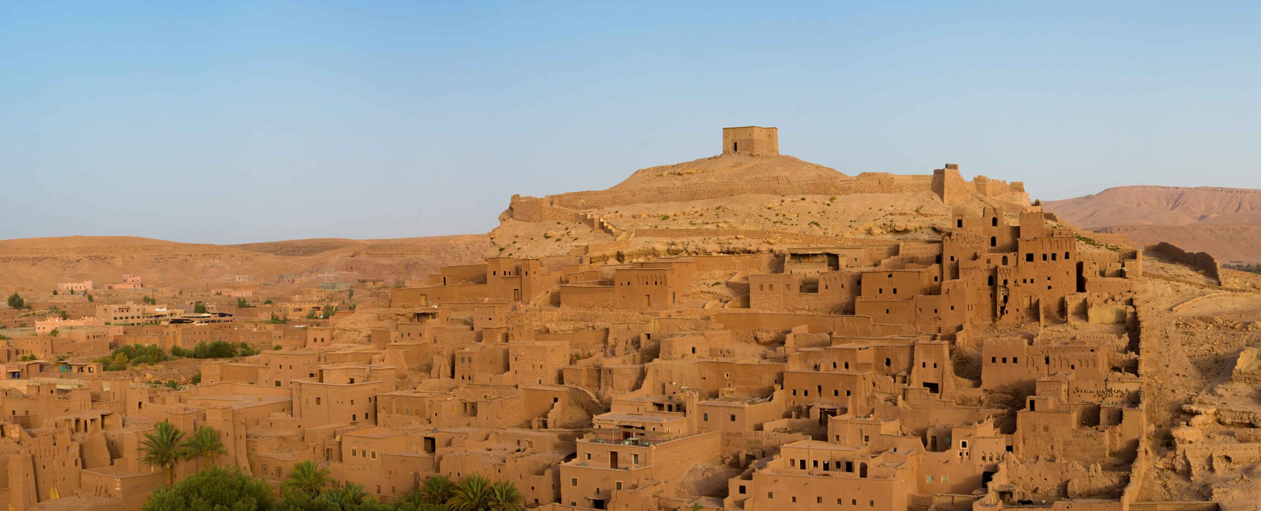 Die Fahrt geht über den Hohen Atlas und über den 2260m hohen Tizi-n-Tichka Pass mit einer überwältigenden Aussicht. Die steile Straße, gesäumt von Eichenwäldern und Nussbäumen, führt an den Lehm- und Steinhäusern der Berberdörfer und an rauschenden Gebirgsbächen vorbei. Wenn der Pass überquert ist, führt die steile Straße hinab in die fast mondähnliche Landschaft des Antiatlas und wir erreichen unser erstes Ziel, die Kasbah vonTelouet; entlang der ehemaligen Route der Karawanen, war diese der Sitz der Macht der Familie El Glaoui, daher manchmal auch Palast von Glaoui genannt. (wenn Sie wünschen können Sie die Kasbah besichtigen). Weiter geht die Fahrt nach Ait Benhaddou eine aus Lehmziegeln erbaute Kasbah. Diese, als Weltkulturerbe von der UNESCO geschützt, gilt als die schönste und berühmteste Kasbah Marokkos und diente als Kulisse für Filme wie “Lawrence von Arabien”, “Jesus von Nazareth” oder “Gladiator”. Nach der Besichtigung, Mittagspause und Weiterfahrt durch Dattelpalmen-Oasen, vorbei an wunderschönen alten Kasbahs, die dieser Region ihren Namen gegeben haben, das Tal der 1000 Kasbahs. Über Skoura und Kelaa M’Gouna, berühmt für die Rosen -und Rosenprodukte, kommen wir in die Dadesschlucht. Abendessen und Übernachtung im Riad in der Dadesschlucht.