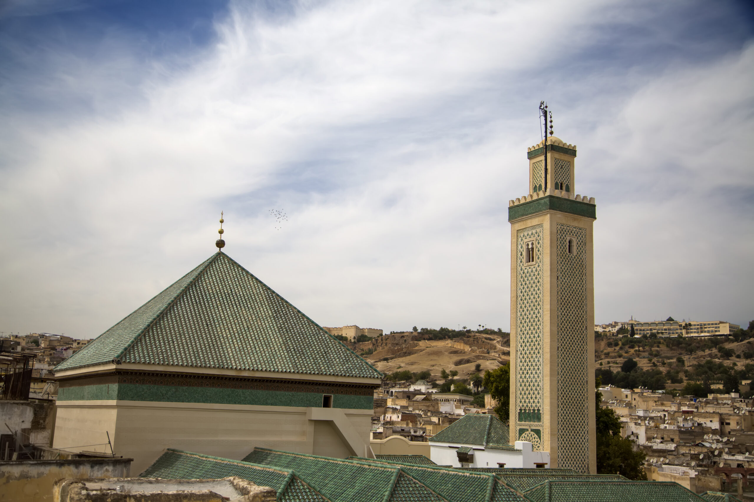 Nach dem Frühstück im Riad haben Sie den Tag Zeit für die Besichtigung von Fes, der drittgrößten Stadt Marokkos und einst das kulturelle und religiöse Zentrum Marokkos. Fes ist in drei Stadtviertel aufgeteilt. Der älteste Stadtteil Fès-el-Bali, wurde im arabischen Mittelalter erbaut, dessen Charakter nicht verloren gegangen ist. Fès-el-Bali wurde um die Qarawiyin-Universität erbaut, die nach ihrer Gründung im Jahre 859 das Zentrum des öffentlichen Lebens darstellte. Sie wird von der Stadtmauer eingeschlossen. Geschäftiges Treiben in den engen Gassen, in denen kein Fahrzeug fahren kann, Gerüche von Gewürzen und Garküchen, Geräusche des angesiedelten Handwerks sowie der Besuch des Gerberviertels, wo Tierfelle noch auf traditionelle Art gegerbt werden, hinterlassen einen bleibenden Eindruck. Ein zweiter Stadtteil ist die sogenannte Neustadt Fèz el Jadid. Sie wurde Mitte des 13. Jahrhunderts erbaut, als Fèz zur Hauptstadt erklärt wurde. Im Zentrum stehen der Königspalast und die Mellah, das jüdische Viertel. Der dritte Stadtteil ist die Ville Nouvelle, die auf die Kolonialherrschaft der Franzosen zurückgeht. Sie stellt heute den flächen- und einwohnermäßig größten Teil von Fèz dar. Von dort aus hat man einen guten Ausblick auf Fèz el Bali, wobei die herrlichen arabisch-andalusischen Bauwerke und die Minarette der Moscheen mit den Dächern aus grün lasierten Ziegeln erst richtig zur Geltung kommen. Übernachtung im Riad.
