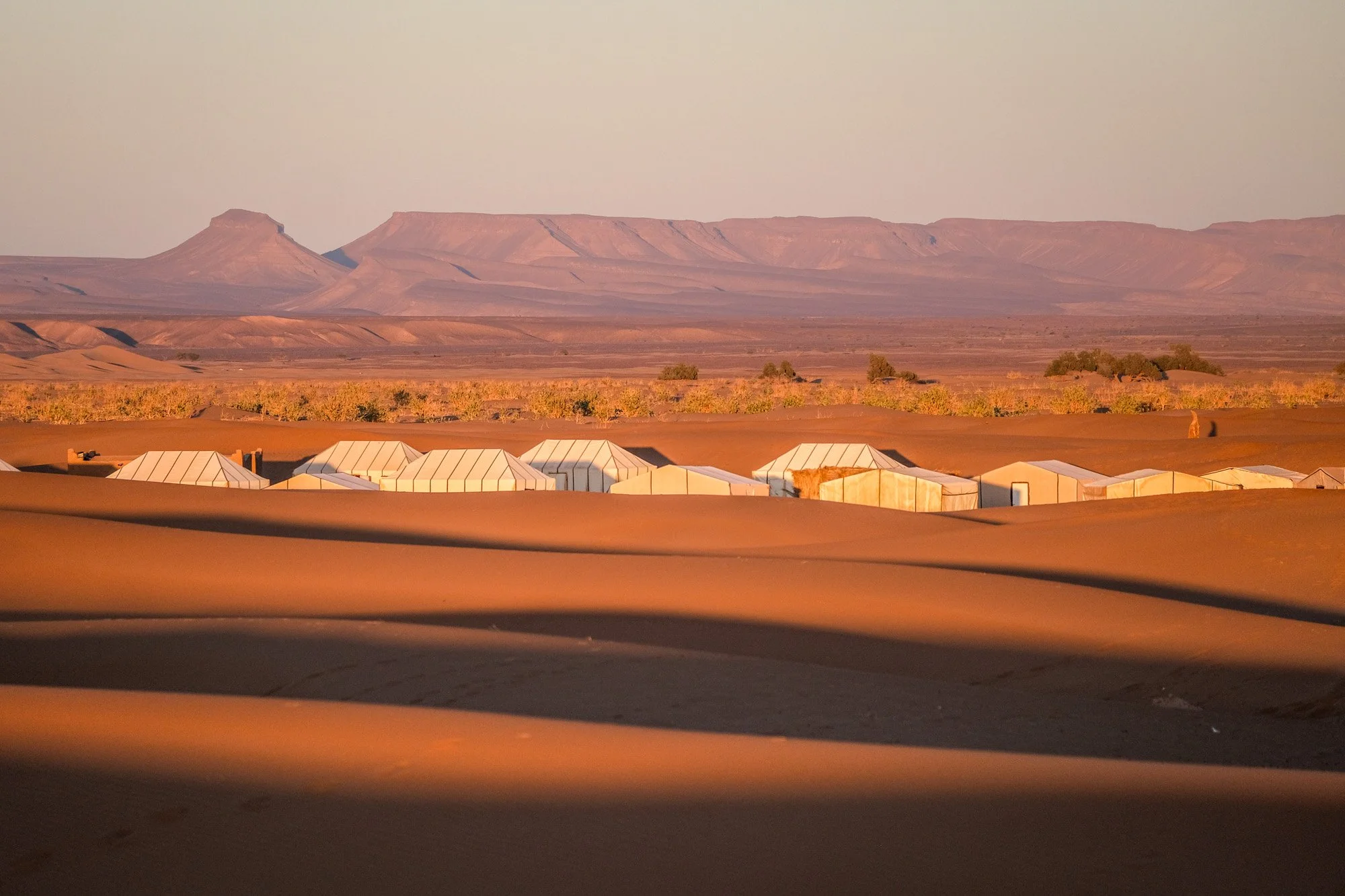 - 3 overnight in private comfortable tent in our desert camp in the Erg Chigaga dunes with breakfast, lunch, dinner and special new years Eve dinner